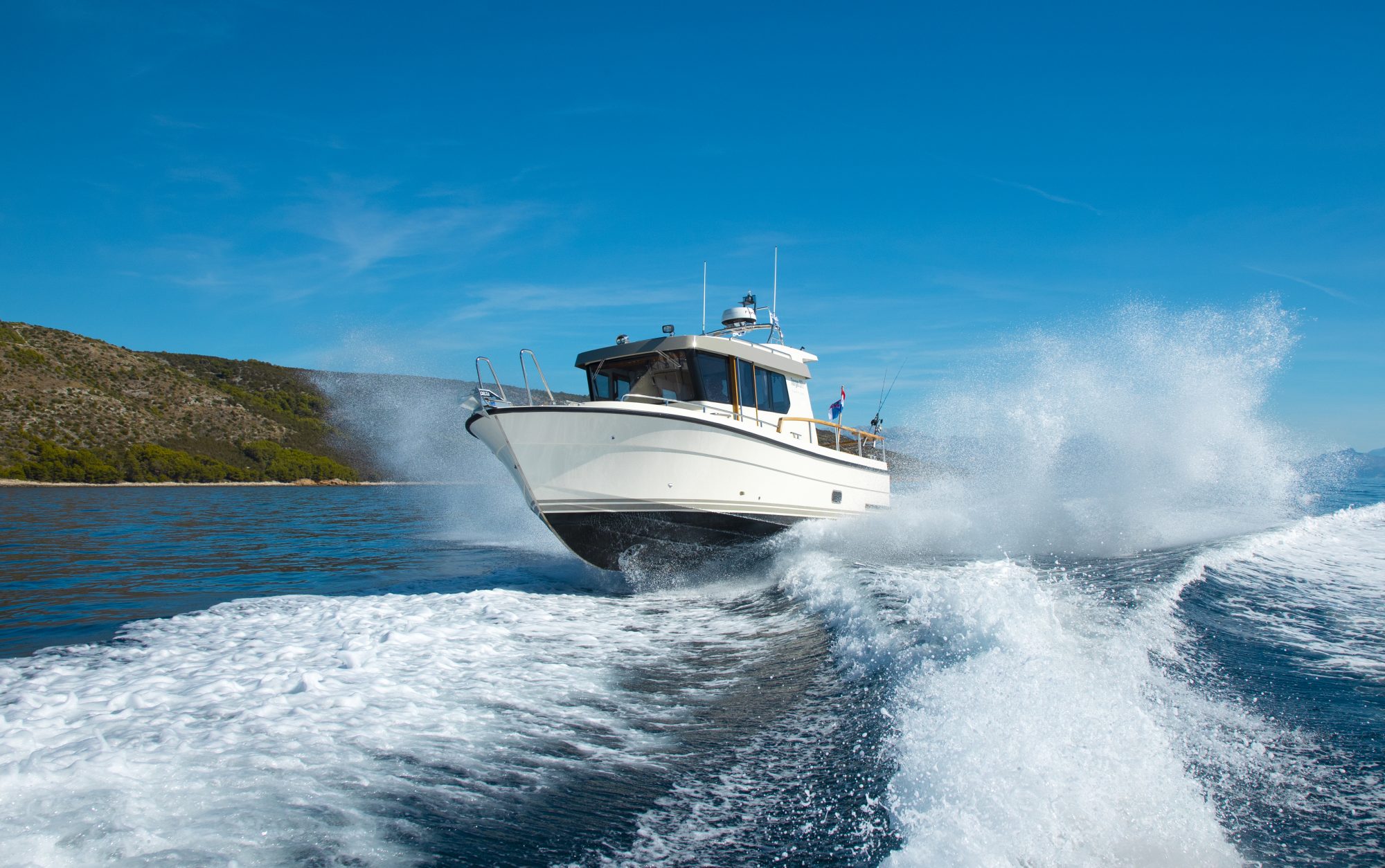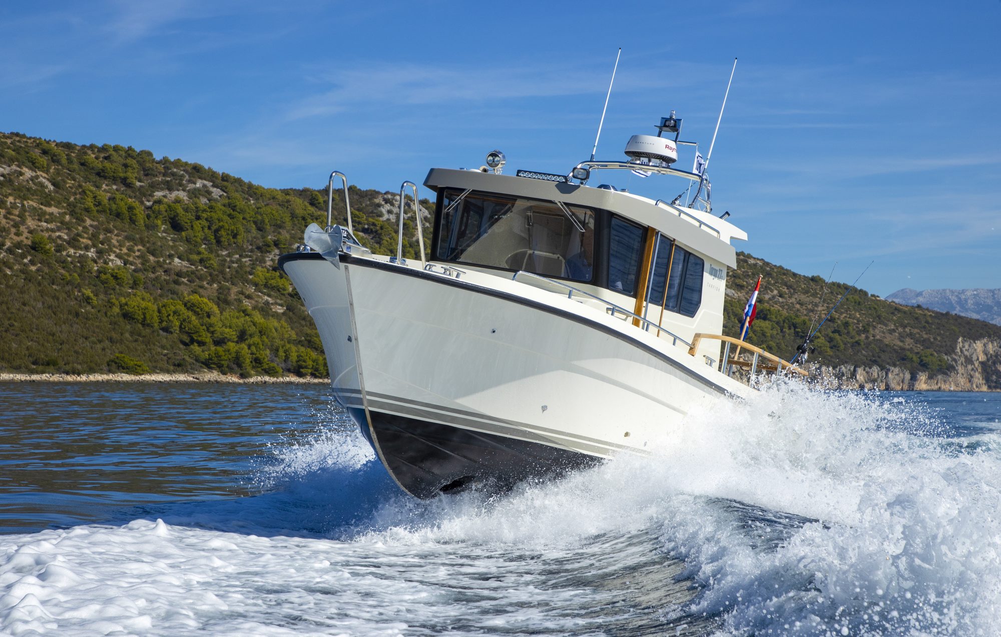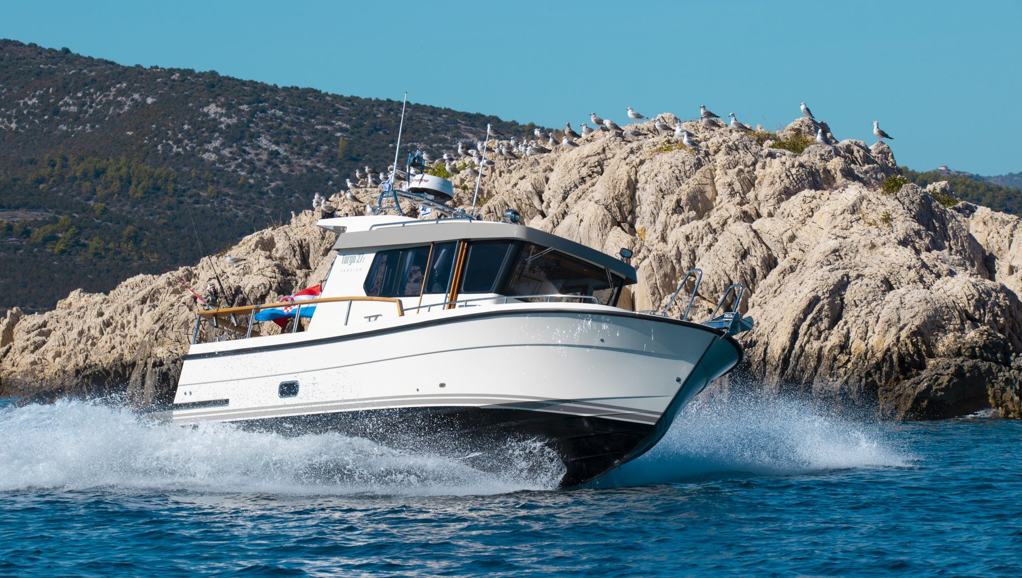 Based on the Targa 27.2 hull, the Tarfish 27.2 offers exceptional safety and handling even in the most demanding conditions. Plus the boat’s spacious cabin ensures that you travel in comfort, while the outstanding visibility from the pilothouse windows adds to your driving pleasure.