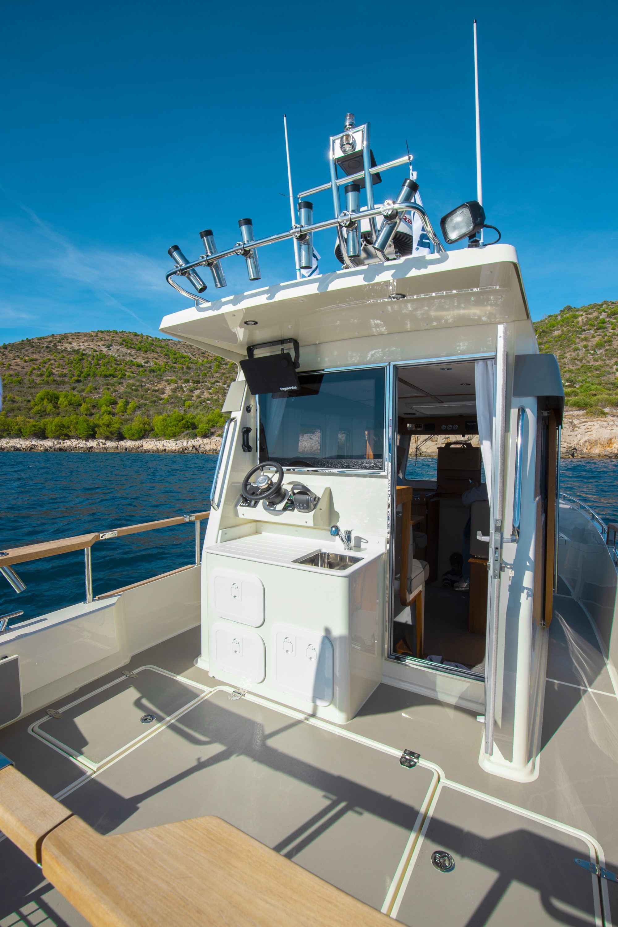 The Tarfish range is designed for recreational fishing and day trips. Each model in the range comes with a door from the pilothouse to the large aft deck and fish tank(s) on the aft deck.